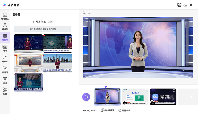 나만의 아바타, 맞춤형 편집, 다양한 산업군 확장을 통해 ONE Studio는 모든 사용자를 위한 영상 제작 도구로 발전합니다.